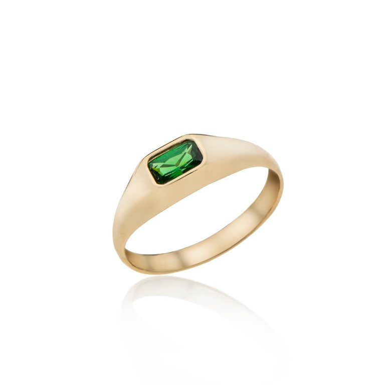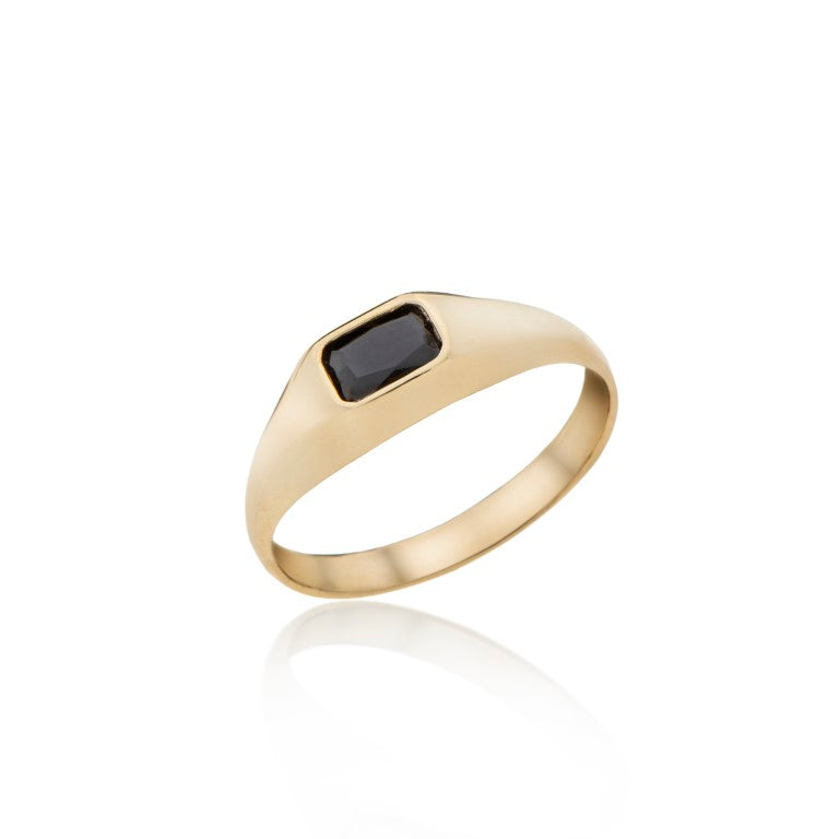 14K טבעת חותם אבן מרובעת זהב
